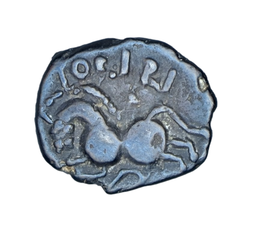 Reverso: Cavalo à galope à esquerda. No campo, sob o corpo do animal, uma serpente em forma de S.